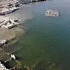 Havadan da görüntülenen barajda, suyun çekilmesi net bir şekilde gözüktü. İHA