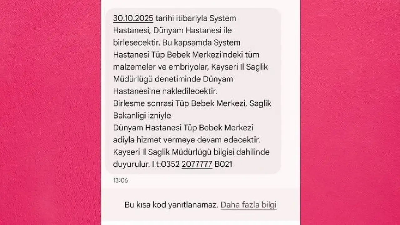 30 Ekim 2025 tarihi itibarıyla System Hastanesi ile Dünyam Hastanesi’nin birleşeceği de resmi olarak duyuruldu. Gönderilen bilgilendirme mesajında, Sistem Hastanesi’ne bağlı Tüp Bebek Merkezi’ndeki tüm malzemelerin ve embriyoların, Kayseri İl Sağlık Müdürlüğü denetiminde Dünyam Hastanesi’ne nakledileceği belirtildi.