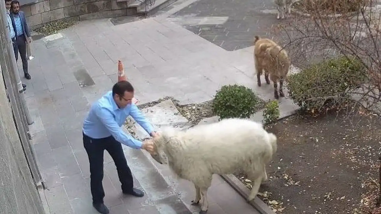 Göre yolunda çoban Hasan Ünbulan 'ın otlattığı sürüden kaçan bir koç, bir keçi ve üç koyun Nevşehir Belediyesi önüne geldi. Binaya girmeye çalışan koç, keçi ve koyunlara güvenlik görevlileri engel olmaya çalıştı. Hayvanlar kendilerine engel olmaya çalışan güvenlik görevlilerine ve bir belediye çalışanına saldırdı. Daha sonra Nevşehir Belediyesi Mali Hizmetler odasına girmek isteyen hayvanlar, bir genç tarafından uzaklaştırılmak istenince genci kovaladı. Belediye çalışanları kapıya siper olarak hayvanların içeri girmesini engellerken, Nevşehir Belediyesi Hayvan Kasabası görevlilerine haber verildi. Gelen görevliler koç, keçi ve koyunları yakalayarak Hayvan Kasabası 'na götürdü. Yaşananlar ise güvenlik kameraları tarafından saniye saniye görüntülendi.