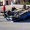Sivas'ın Suşehri ilçesinde meydana gelen trafik kazasında bir otomobil takla atarak ters döndü, kazada şans eseri yaralanan olmadı.