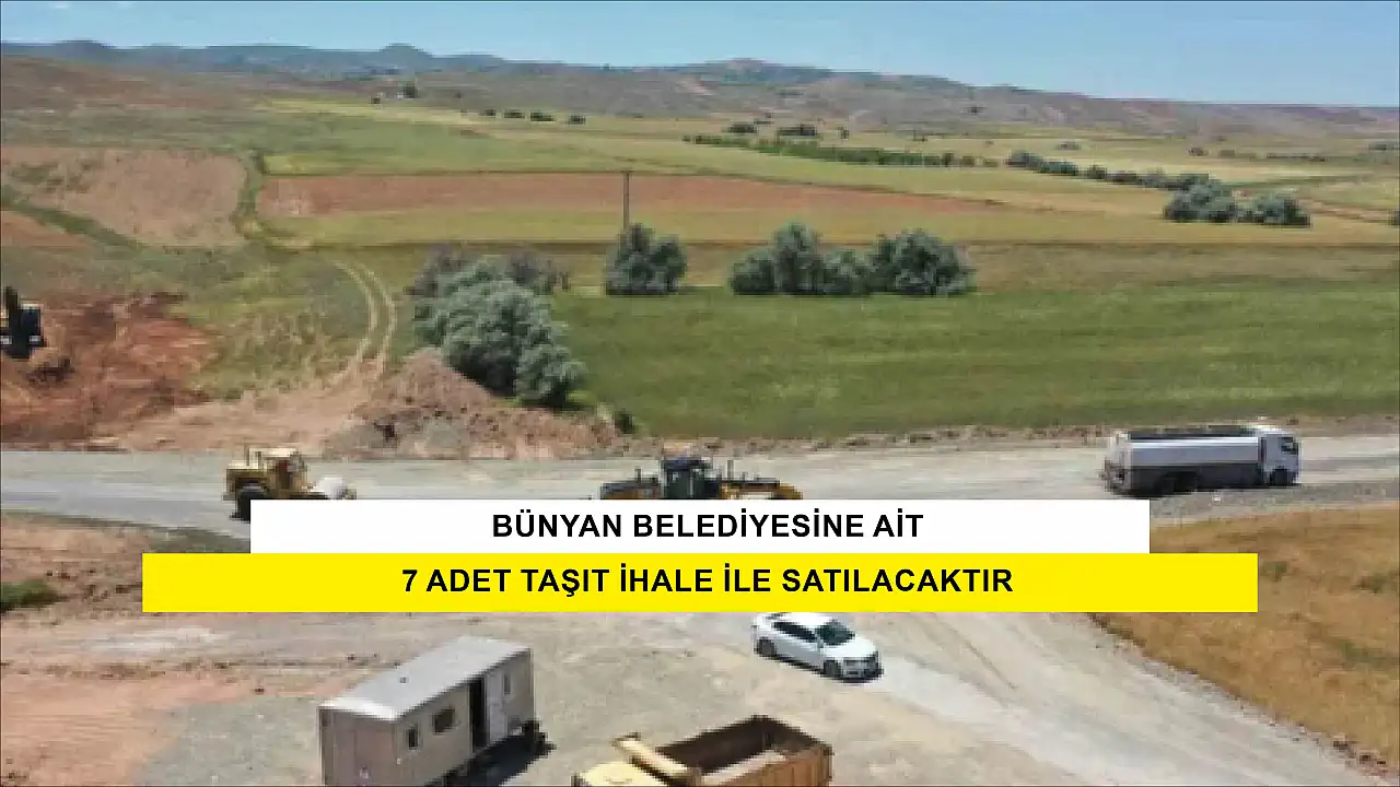 Mülkiyeti Bünyan Belediyesine ait aşağıda bilgileri bulunan 7 adet taşıt 16.04.2025 tarih ve 103 sayılı encümen kararına istinaden 2886 DİK’nun 45 Maddesi uyarınca Açık Teklif Usulü ile 07.05.2025 tarih ve saat 16:00 da ihale ile satılacaktır.