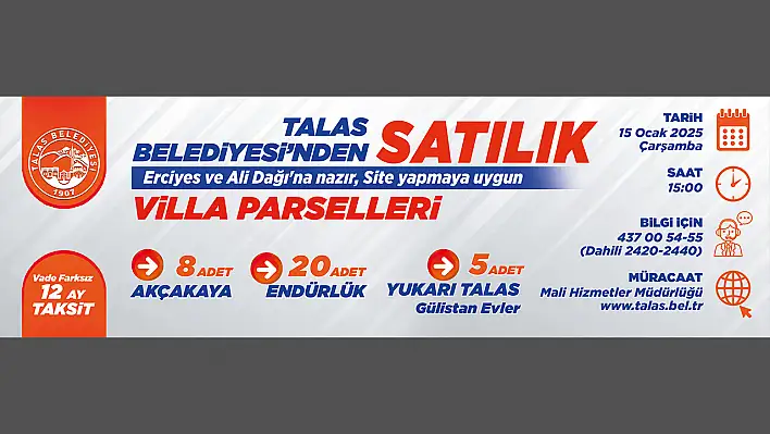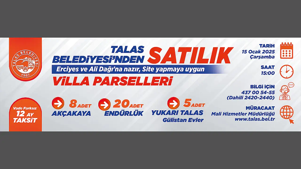Talas Belediyesi'nden Erciyes ve Ali Dağı'na Nazır Satılık Villa Parseli