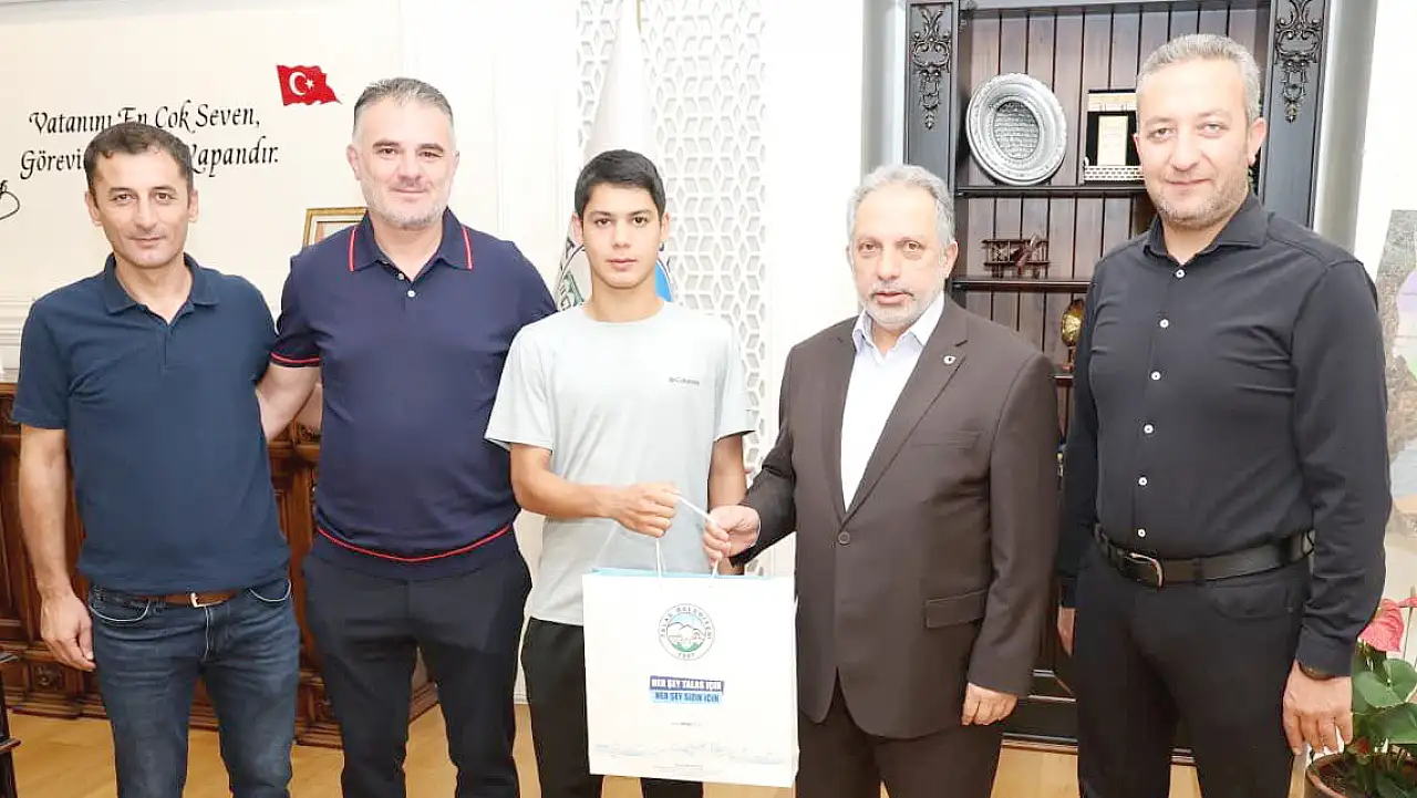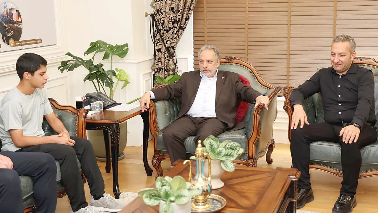 Talas Belediyespor, geçtiğimiz sezon U-14 ve U-15 yaş kategorilerinde Türkiye şampiyonlukları kazanarak büyük bir başarının altına imza atmıştı. Trabzonspor altyapısına transfer olan Mustafa Çiğdem, Kayseri ziyaretinde Başkan Mustafa Yalçın'a üzerinde ismi yasılı olduğu Trabzonspor forması hediye etti.