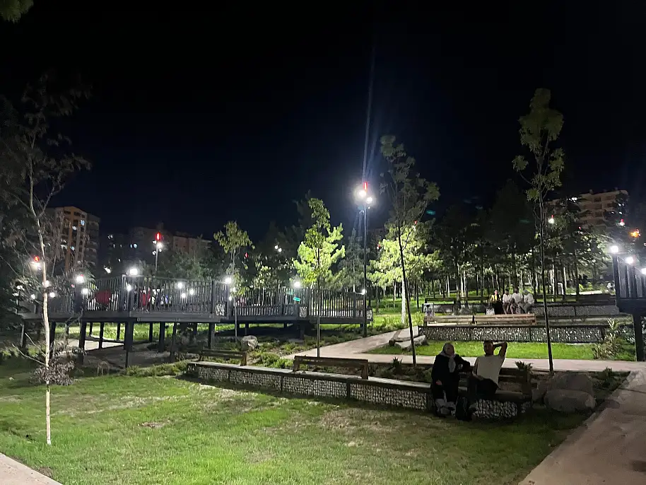 Talas Millet Bahçesi’nde ışıklandırmaların da tamamlanmasıyla vatandaşların merak ettiği bir alan haline geldi. Yeşillendirme ve çeşitli ışıklandırmalarıyla özellikle akşam vakti dikkat çeken Millet Bahçesi şimdiden cazibe merkezi oldu.