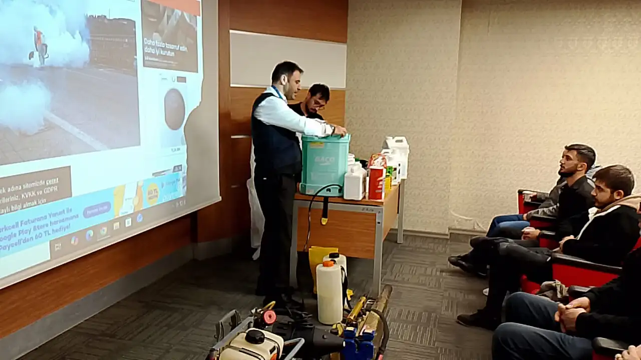 Eğitim programı kapsamında Talas Belediyesinin sahada yürüttüğü vektörle mücadele çalışmaları katılımcılarla ayrıntılı şekilde paylaşıldı. Dezenfeksiyon uygulamaları, larva ve haşere kontrolüne yönelik yöntemler, kullanılan ekipmanlar ile uygulama planlaması, izleme ve raporlama süreçleri örnekler üzerinden aktarıldı. Gerçek saha uygulamalarıyla desteklenen eğitim, katılımcılara teorinin ötesinde pratik bir bakış açısı kazandırdı.