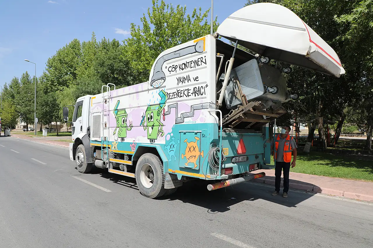 Konteyner yıkama aracı, tamamen kapalı sistemle çalışıyor ve hiçbir atığın çevreye sızmasına izin vermeden işlemini tamamlıyor. Bu da Talas Belediyesi’nin çevreye duyarlı ve yenilikçi hizmet anlayışının bir başka örneği olarak öne çıkıyor.