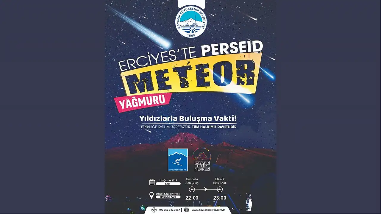 Erciyes Kayak Merkezi, bu yaz yine gökyüzü meraklılarını ağırlamaya hazırlanıyor. Kayseri Büyükşehir Belediyesi, Erciyes A.Ş. ve Kayseri Bilim Merkezi iş birliğiyle düzenlenecek olan Perseid Meteor Yağmuru etkinliği, 12 Ağustos 2025 Salı günü Erciyes’in eşsiz atmosferinde gerçekleşecek.