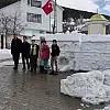 Gündem olan ekibin İstanbul ziyaretinin ardından köy meydanında yaptıkları tarihi Sivas Valilik binasının kardan maketi de oldukça ilgi gördü.
