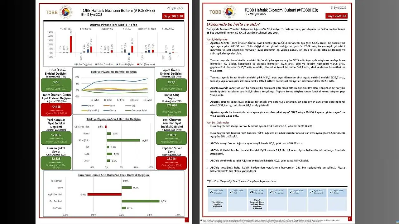 TOBB’un 15-19 Eylül 2025 tarihli Haftalık Ekonomi Bülteni, ekonomide çarpıcı bir uçurumu rakamlarla ortaya koydu. Ağustos ayında Tarım ÜFE yıllık bazda yüzde 41,55 arttı. Özellikle yumuşak çekirdekli meyvelerde fiyatlar fırlarken, tropikal meyvelerdeki artış yüzde 131’i buldu.