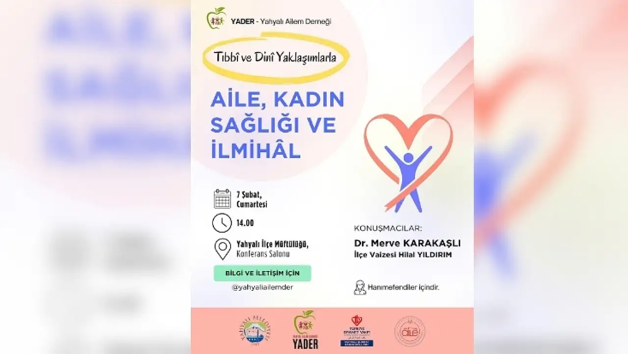 Yahyalı Ailem Derneği (YADER) tarafından ‘Tıbbi ve Dini Yaklaşımlarla Aile, Kadın Sağlığı ve İlmihal’ konulu program düzenleneceği duyuruldu. Kadınlara yönelik gerçekleştirilecek etkinlikte aile yapısı, kadın sağlığı ve dini konuların farklı yönleri ele alınacak.