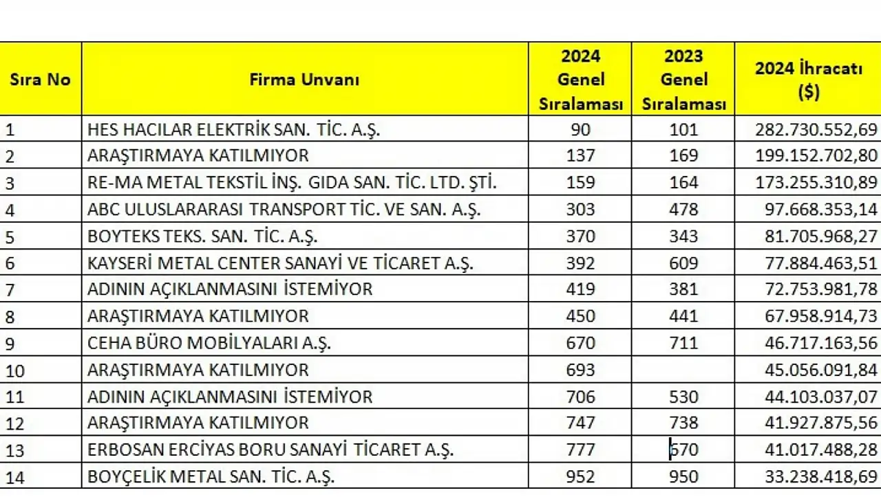TİM 2024 listesi açıklandı - Kayseri'den 18 firma ilk 1000'e girdi!