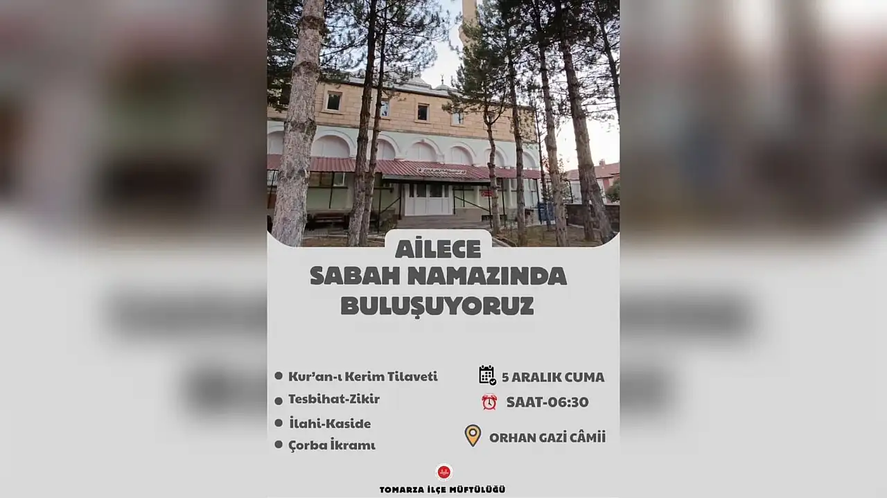 Tomarza İlçe Müftülüğü, ilçede manevi birlikteliği güçlendirmek amacıyla aileleri bir araya getirecek özel bir sabah programı hazırladı. Orhan Gazi Camii’nde gerçekleşecek sabah namazı buluşması, sadece ibadetle sınırlı olmayıp, katılımcılara huzurlu ve paylaşım dolu bir ortam sunuyor.
