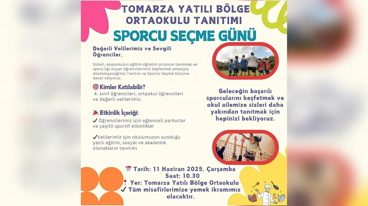 Kayseri’nin Tomarza ilçesindeki Tomarza Yatılı Bölge Ortaokulu, bugün gerçekleştirilecek tanıtım ve sporcu seçme etkinliğiyle öğrenci ve velileri bir araya getiriyor. Saat 10.30’da başlayacak programda, özellikle 4. sınıf öğrencileri hedef alınırken; parkur etkinlikleri ve sportif seçmelerle yetenekli çocuklar belirlenecek.