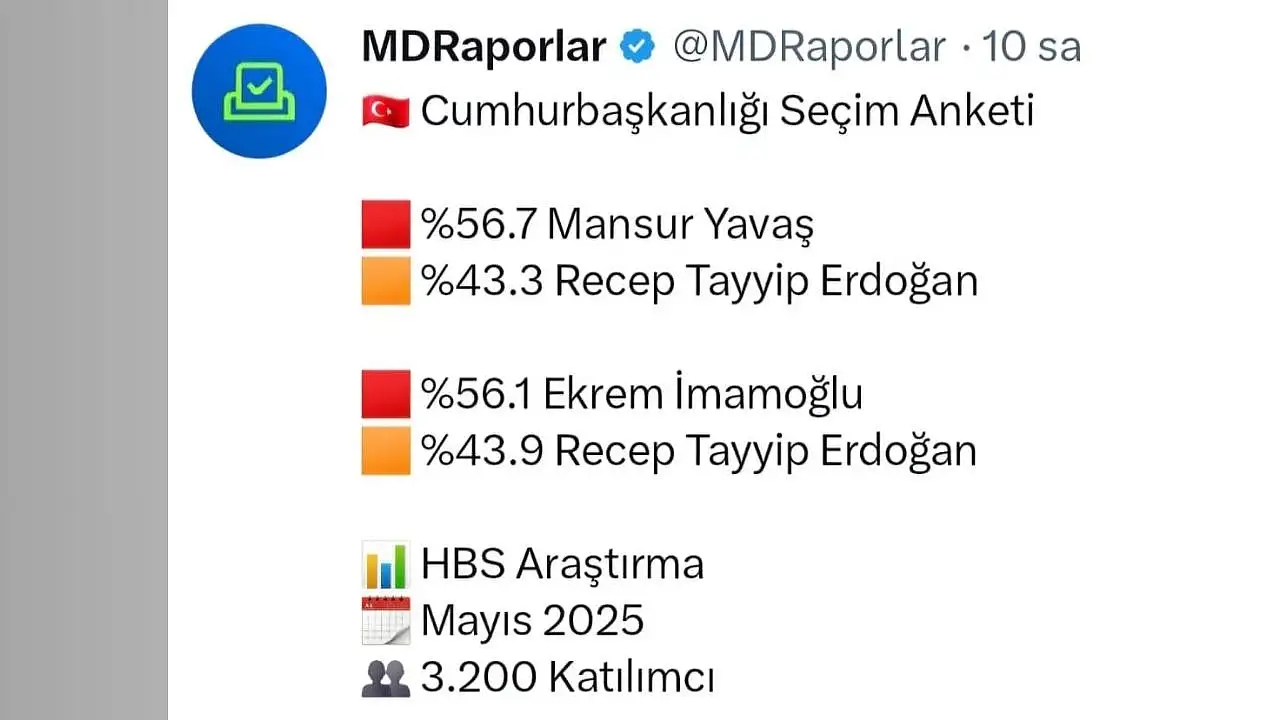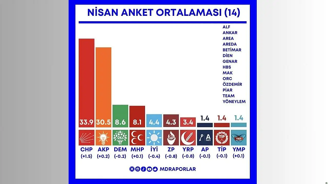 Bu karşılaştırma, Türkiye genelinde muhalefetin (özellikle CHP ve DEM Parti) yükselişte olduğunu, buna karşılık AK Parti’nin sınırlı bir artışla yerini koruduğunu, MHP’nin ise gerileme eğiliminde olduğunu gösteriyor.