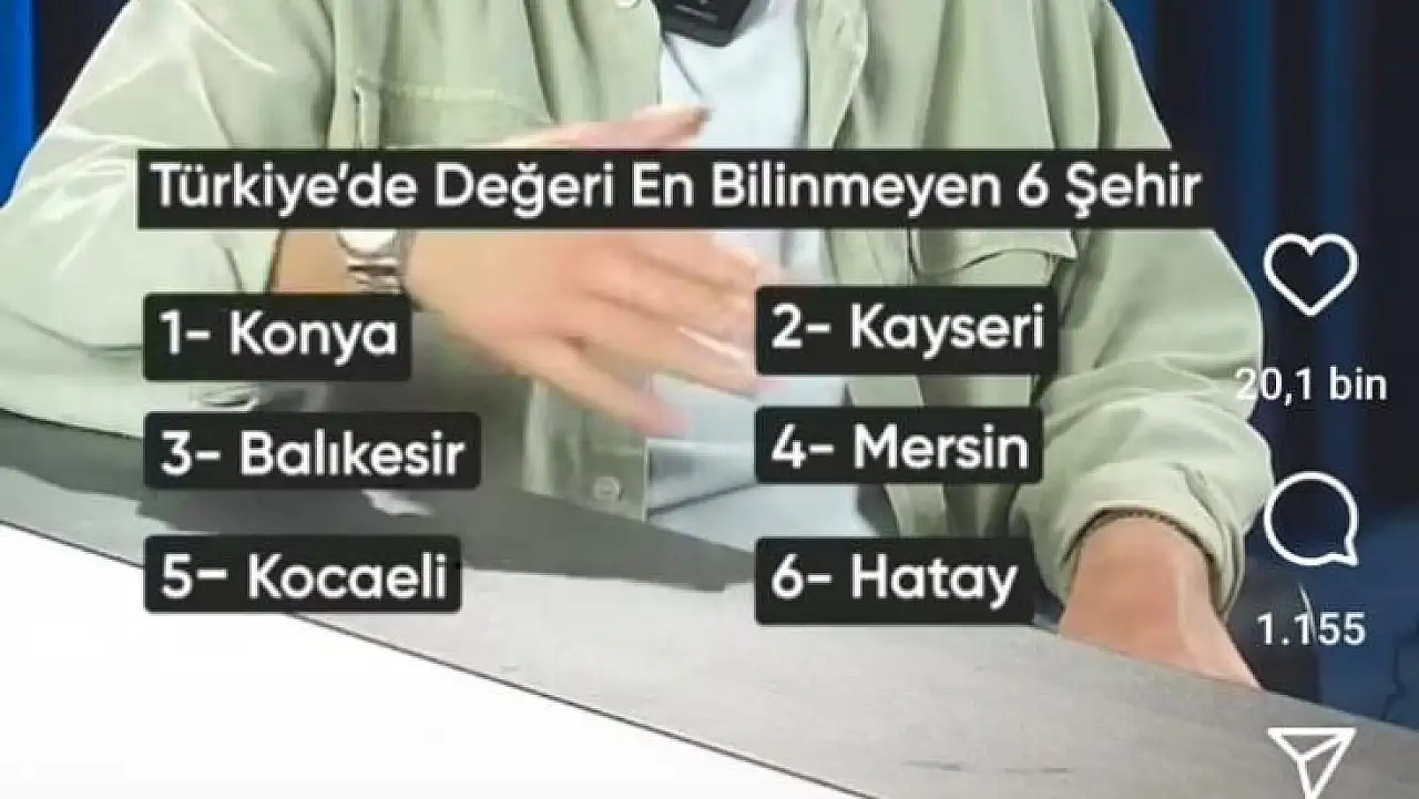 Sosyal medyada yayılan ve genç içerik üreticilerinin hazırladığı bir videoda, ‘Türkiye’de Değeri En Bilinmeyen 6 Şehir’ sıralaması yapıldı. Videoda Kayseri, 2. sırada yer alarak dikkatleri üzerine çekti.