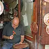 Daha çok takım taraftarları için takımların logolarını ilmek ilmek bakıra işleyen ve bakırın üstüne her türlü şekil veren Büyükçapa’nın yaptığı ürünler ise büyük ilgi görüyor. Bir elinde darbe kalemi diğerinde de çekiçle gün boyu bakıra şekil veren Büyükçapa, mesleği babası Şaban Büyükçapa’dan öğrendiğini söyledi.
