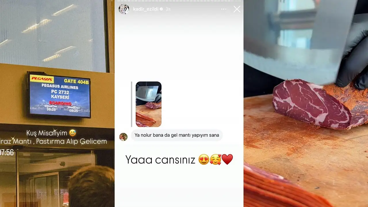 ‘Aslan gibi Gayseriliyiz’ şarkısıyla geleceğini duyuran Ezildi, ‘Biraz mantı, pastırma alıp gelicem’ dedi. Gelir gelmez Ezildi’nin ilk durağı pastırmacı dükkanı oldu. Gelmişken alışverişimi de yapayım diyen Ezildi, pastırmaların ince ince dilimlendiği videoyu hesabından yayınladı. Kayserililerin ‘Ne olur bana da gel mantı yapayım sana’ şeklinde Ezildi’ye mesaj attığı görüldü.