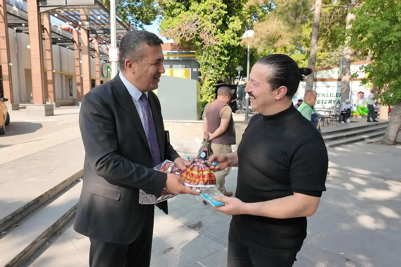 Ayrıca, Kayseri Mesleki Eğitim ve Kültür A.Ş. (KAYMEK) bünyesindeki kursiyerler tarafından el emeğiyle hazırlanan hediyeler, Basın Yayın ve Halkla İlişkiler Daire Başkanı Cenani Ayaydın tarafından Tuncer’e takdim edildi.