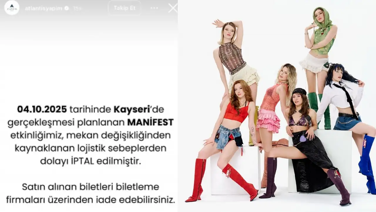 Son olarak Atlantis yapım şirketinden yapılan açıklamada, ‘’4 Ekim 2025 tarihinde Kayseri’de gerçekleşmesi planlanan Manifest etkinliğimiz mekan değişikliğinden kaynaklanan lojistik sebeplerden dolayı iptal edilmiştir.’’ denildi.