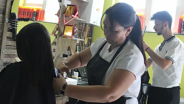 Kayseri'de Yıldırım Beyazıt Mahallesi Muhtarı Gonca Kaan; 6 yıldır geleneksel hale getirdiği etkinlikle okul açılma zamanında kız ve erkek çocukların saçlarını ücretsiz kesiyor.