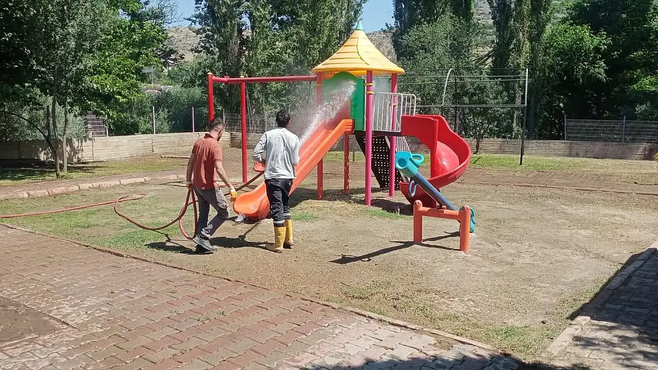 Şehit Celil Sarıkaya Parkı’nda da temizlik, bakım ve onarım çalışmaları gerçekleştirildi. Park içerisindeki yeşil alanlar düzenlenirken, çocuk oyun grupları ve oturma alanlarında bakım onarım çalışmalarıyla vatandaşların daha temiz ve güvenli bir ortamda vakit geçirmesi sağlandı.