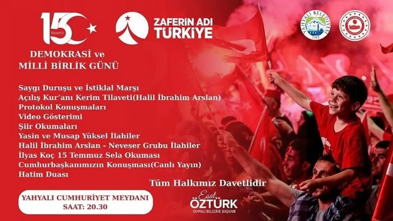 Yahyalı Belediyesi tarafından organize edilen etkinlik, 15 Temmuz akşamı saat 20.30’da Cumhuriyet Meydanı’nda gerçekleştirilecek.