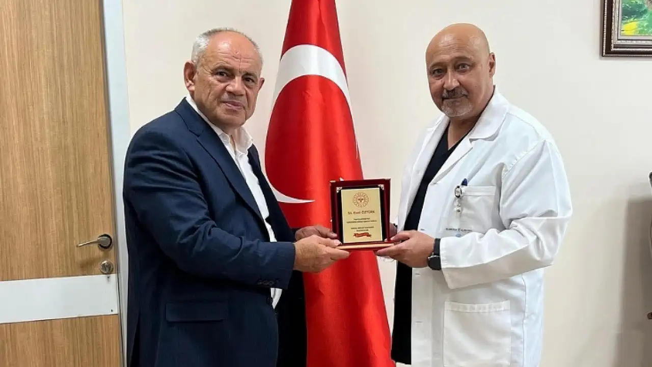 Yahyalı Devlet Hastanesi Başhekimi Dr. Fahri Alpay Onuk, hastaneye kazandırılan Eko cihazı dolayısıyla Yahyalı Belediye Başkanı Esat Öztürk’e teşekkür plaketi takdim etti.