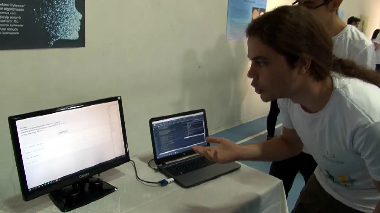 Projeleri hakkında bilgiler veren Tarık Mut, “Şiir yazan bir yapay zeka geliştirdik. Bu yapay zeka için öğrenebilen bir algoritma yazdık. Öğrenebilen algoritmayı eğitti ve 93 tane şair ekledik. Şuanda 11 binden fazla kelime biliyor ve 12 binden fazla da bu kelimeler arasında bağlantılar var. Bu bağlantılar ile anlık olarak dünya üzerinde hiç yazılmamış bir şiiri tek bir tuşla yazabiliyoruz” ifadelerini kullandı.