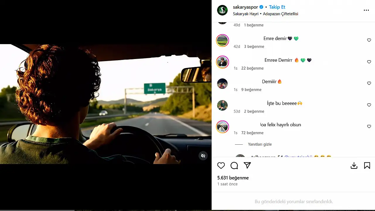 Yeni sezonda yeniden Sakaryaspor forması giyecek olan Emre Demir’in transfer videosu da ilgi çekti. Sakaryaspor sosyal medya ekibi, yapay zeka kullanarak bu transferi duyurdu. Bir otomobilin direksiyonunda yer alan Emre Demir’in, Sakarya’ya doğru yolculuk yaptığı bu video, Adapazarı Çiftetellisi müziğiyle paylaşıldı. Paylaşıma da ‘ev’ emojisi eklendi. ‘Emre Demir evine dönüyor’ mesajı verilirken, bu paylaşım Sakaryaspor taraftarının da büyük beğenisini kazandı.