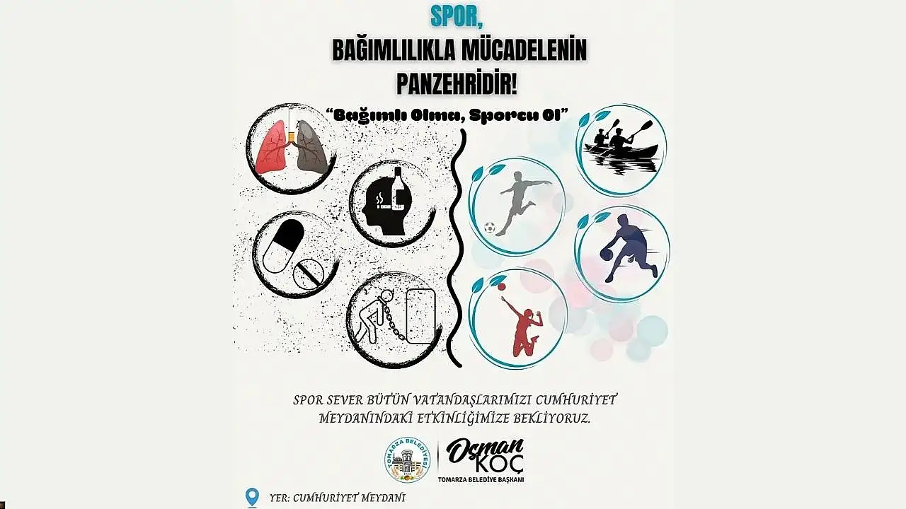 Tomarza Belediye Başkanı Osman Koç, ‘‘Bağımlı olma, sporcu ol’‘ sloganıyla organize edilen programa herkesi davet ederek, ‘‘Sporu seven bütün vatandaşlarımızı Tomarza Cumhuriyet Meydanı’nda görmek istiyoruz’‘ dedi.