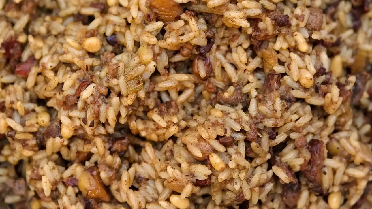 Süzülen pirinçler baharatlarla birlikte tencereye alınır ve şeffaflaşana kadar kavrulur. Kuş üzümleri, sıcak tavuk suyu, tuz ve tereyağı eklenir.