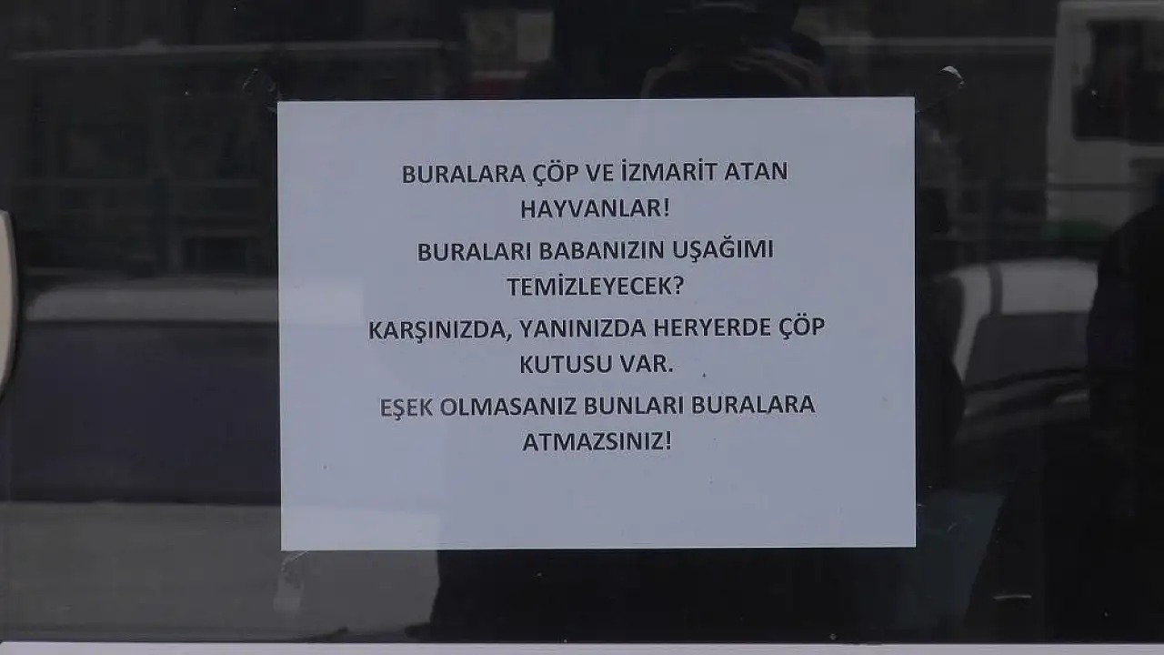 Melikgazi ilçesine bağlı Camikebir Mahallesi Park Bulvarı üzerinde bulunan bir iş merkezinin yöneticisi, sürekli bina etrafına atılan çöp ve sigara izmaritlerinin, çöp kutusuna atılmamasından dolayı giriş kapısına bir not bıraktı. Yöneticinin yazdığı not, görenleri güldürürken, aynı zamanda da düşündürdü. Yönetici, binanın girişine astığı notta ise şu ifadelere yer verdi;