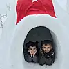 Yozgat'ta yaşayan Ersoy ailesi, karın tadını eskimo evi yaparak çıkardı.