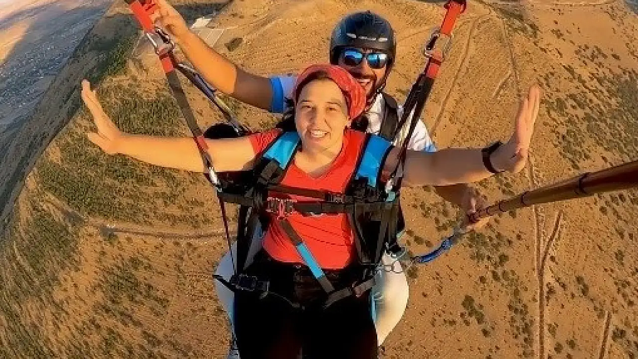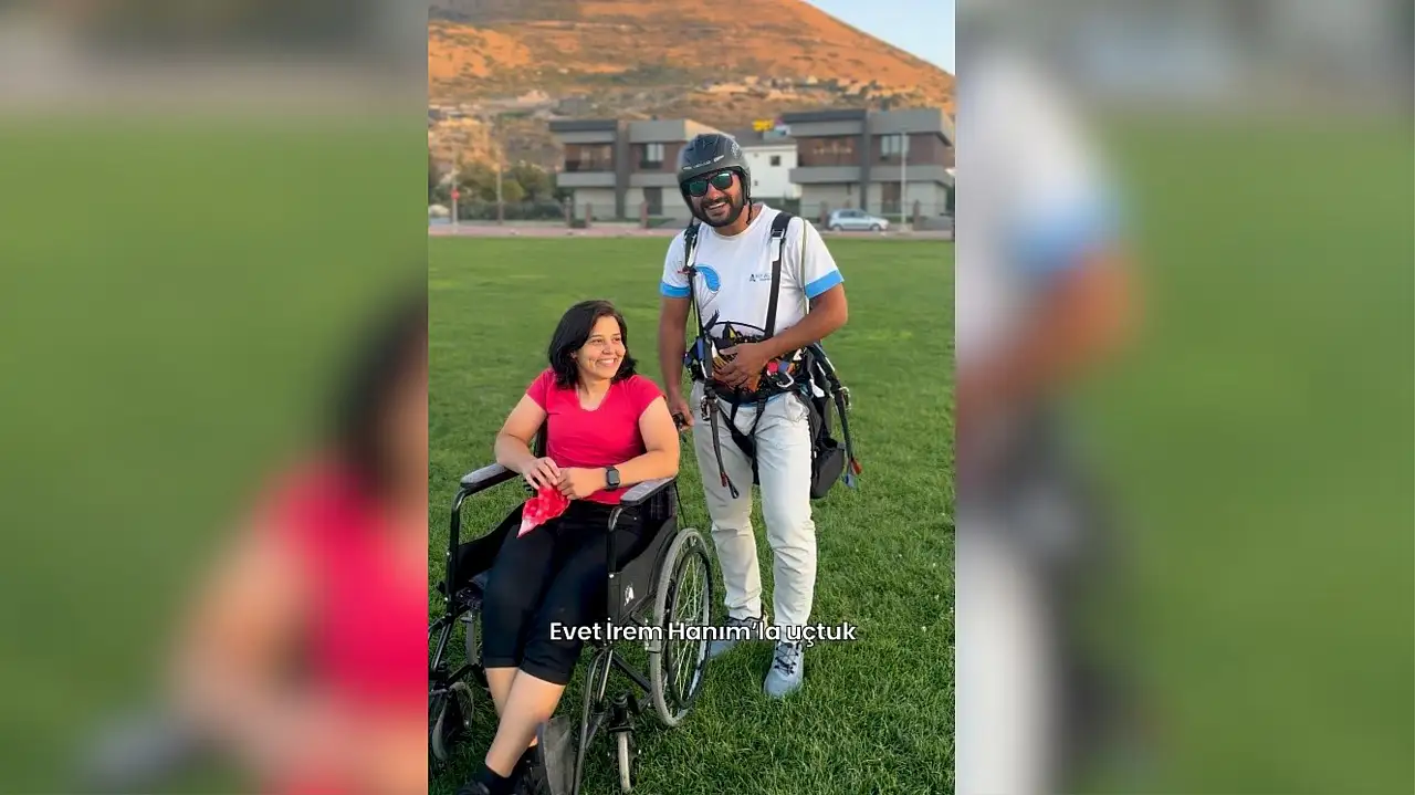 Kayseri’de yaşayan ve çocukluk çağında geçirdiği rahatsızlık sonucu yürüyemeyen 36 yaşındaki İrem’in paraşüte binme hayali gerçek oldu. Tekerlekli sandalyesi uçacağı alana gelen ve burada paraşüte binen İrem’i taşıyan paraşüt görevlilerin yardımıyla havalandı. Ali Dağı’ndan paraşüt pilotu Günay Demir ile gökyüzüne uçan İrem, heyecan dolu anlar yaşadı.