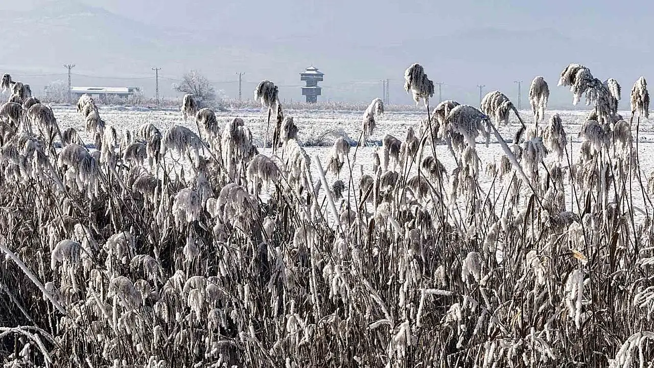 Kar yağışı sonrası sazlık alanları, yürüyüş yolları ve gözetleme kuleleriyle dikkat çeken Kaz Gölü, kış mevsiminin tüm güzelliğini gözler önüne serdi. Beyaz örtüyle kaplanan göl ve çevresi yağlı tabloları andıran görseller oluşturdu.